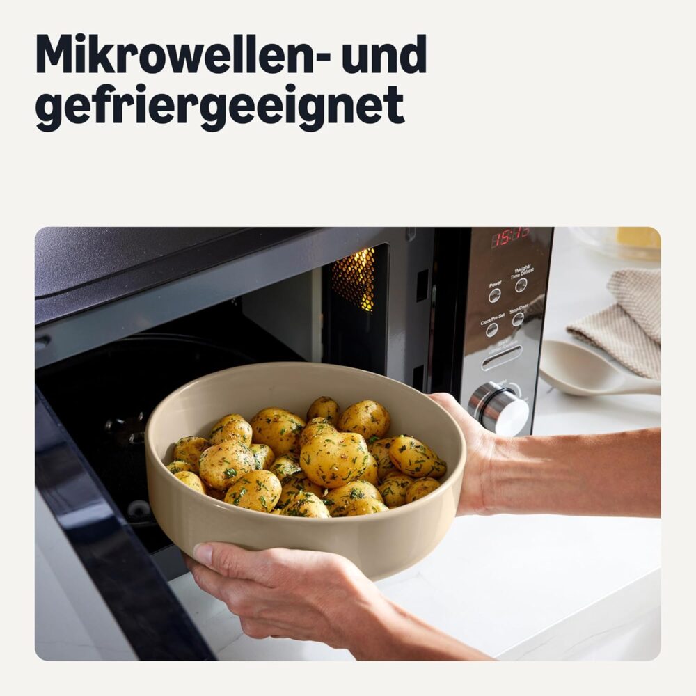 • GLAZED STONEWARE: Made of stoneware with glossy glaze; microwave-safe, freezer safe and stain resistant